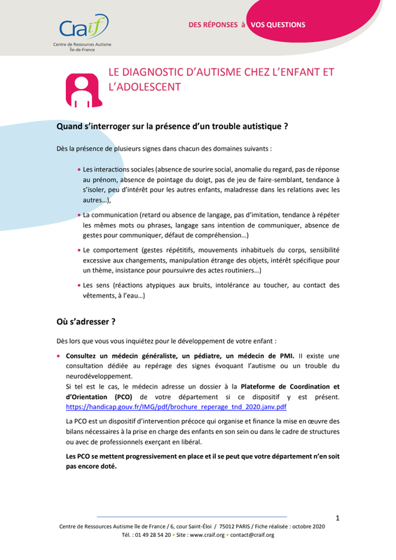 Le diagnostic chez l'enfant / l'adolescent - fiche « Questions-Réponses » CRAIF